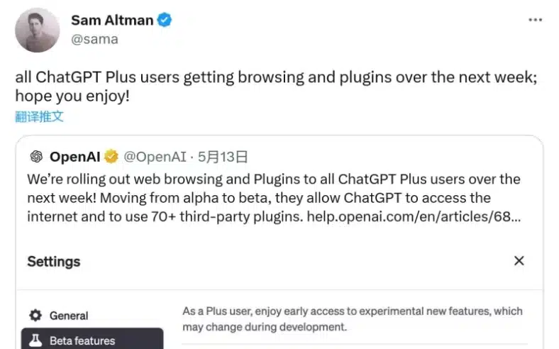 On May 15th, Gizcoupon reported that OpenAI announced it would roll out browsing and plugin features to all ChatGPT Plus users this week. According to OpenAI, users in the Alpha and Beta channels of ChatGPT Plus can access networking features and over 70 plugins.