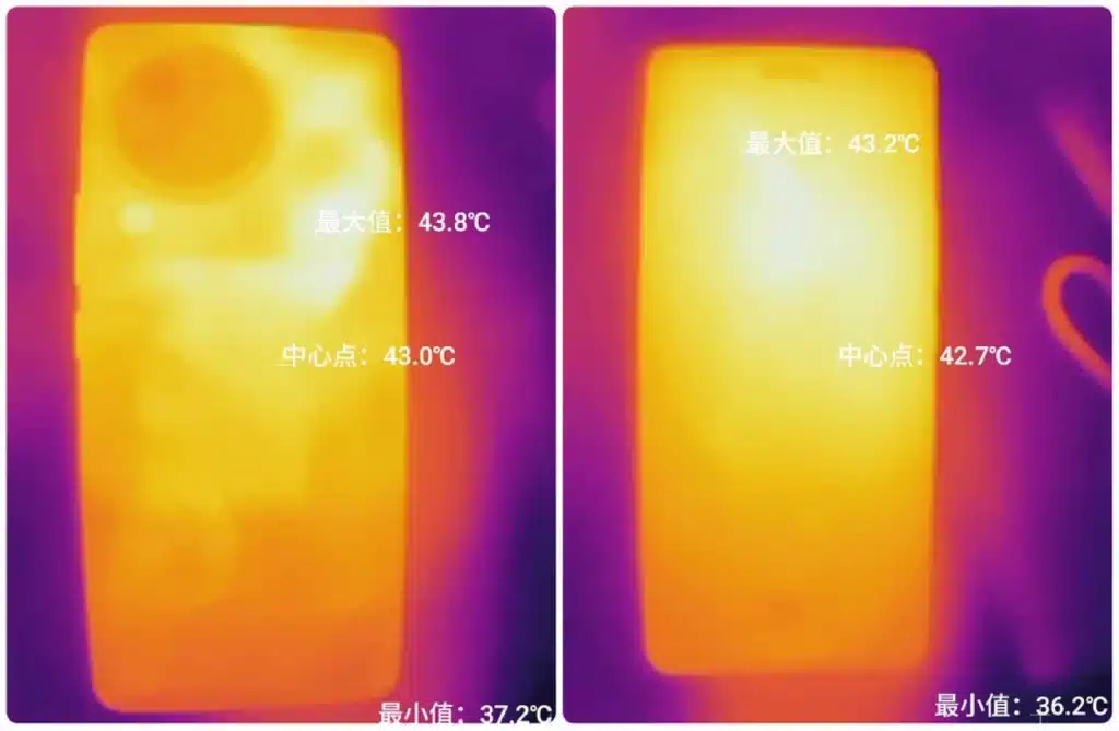 The thermal performance of the Xiaomi Civi 3 can be considered average. For example, after 30 minutes of playing “Genshin Impact,” the maximum temperature on both sides of it remained around 43°C. Considering the test environment and the slim body design, this performance can be considered normal.