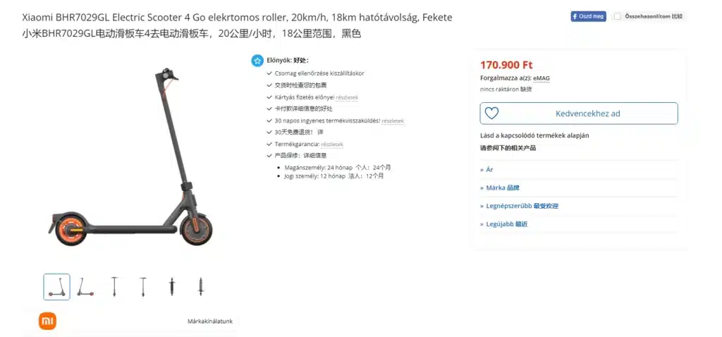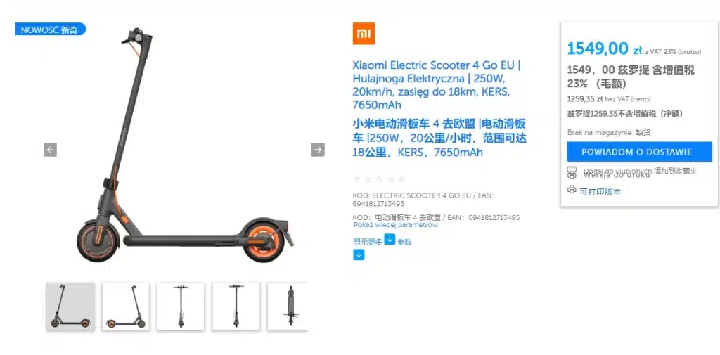 Gizcoupon, citing the aforementioned media report, mentions that two e-commerce platforms, Batna24.com in Poland and eMAG in Hungary, have already introduced the Xiaomi electric scooter 4 Go.
