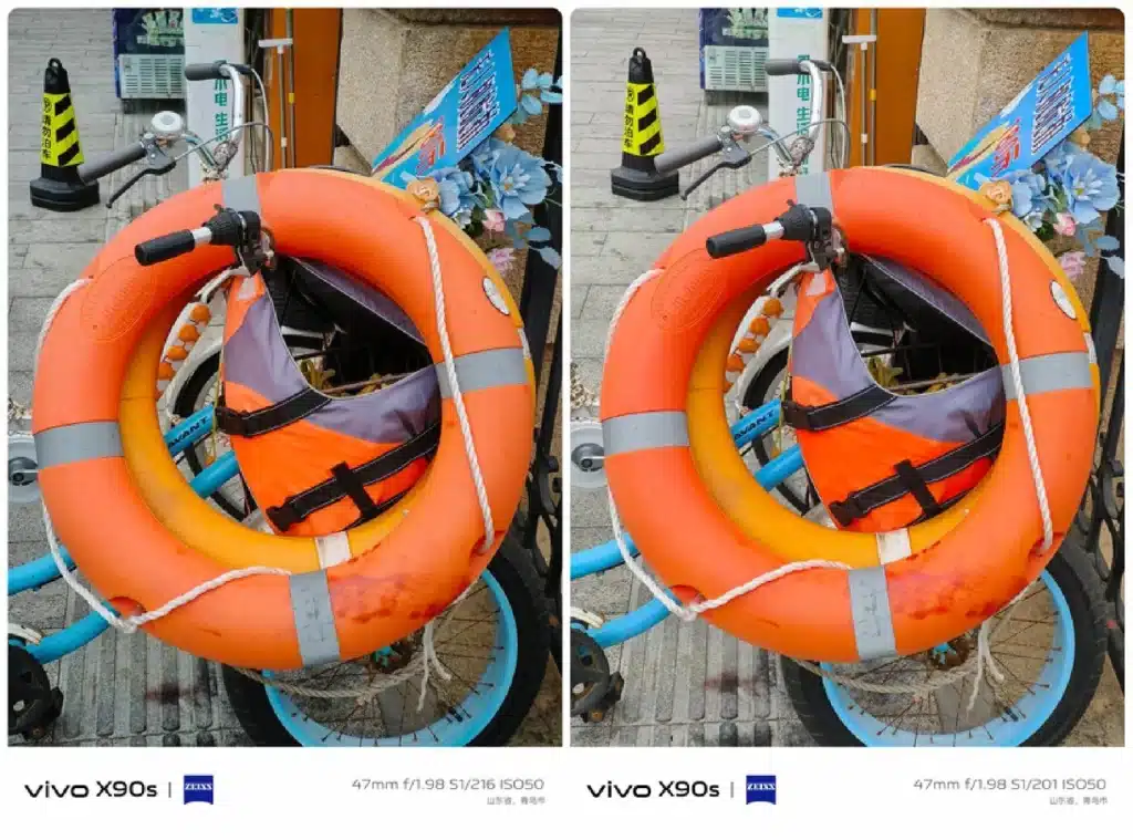 “Visual Experience” is a key upgrade in the generation of the vivo X90s. In terms of hardware specifications, it remains the same as the X90. It still features the combination of IMX866+IMX663+IMX663, which has not changed from the previous generation. The main camera still uses the VCS biomimetic spectral sensor with OIS support. The 12MP IMX663 portrait lens supports Zeiss’s Flare Portrait. Additionally, it can simulate the halo effect of Zeiss cinematic lenses in backlit scenes.