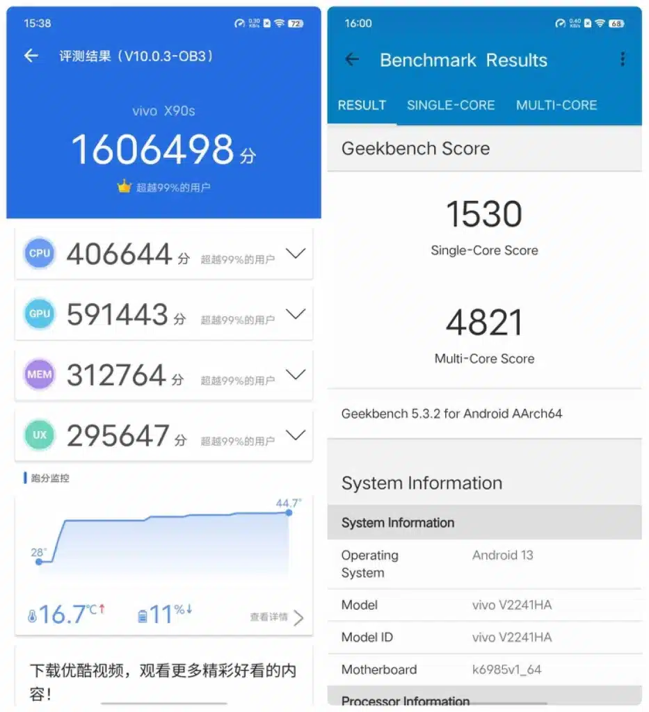 Now let’s take a look at the benchmark scores of the vivo X90s.