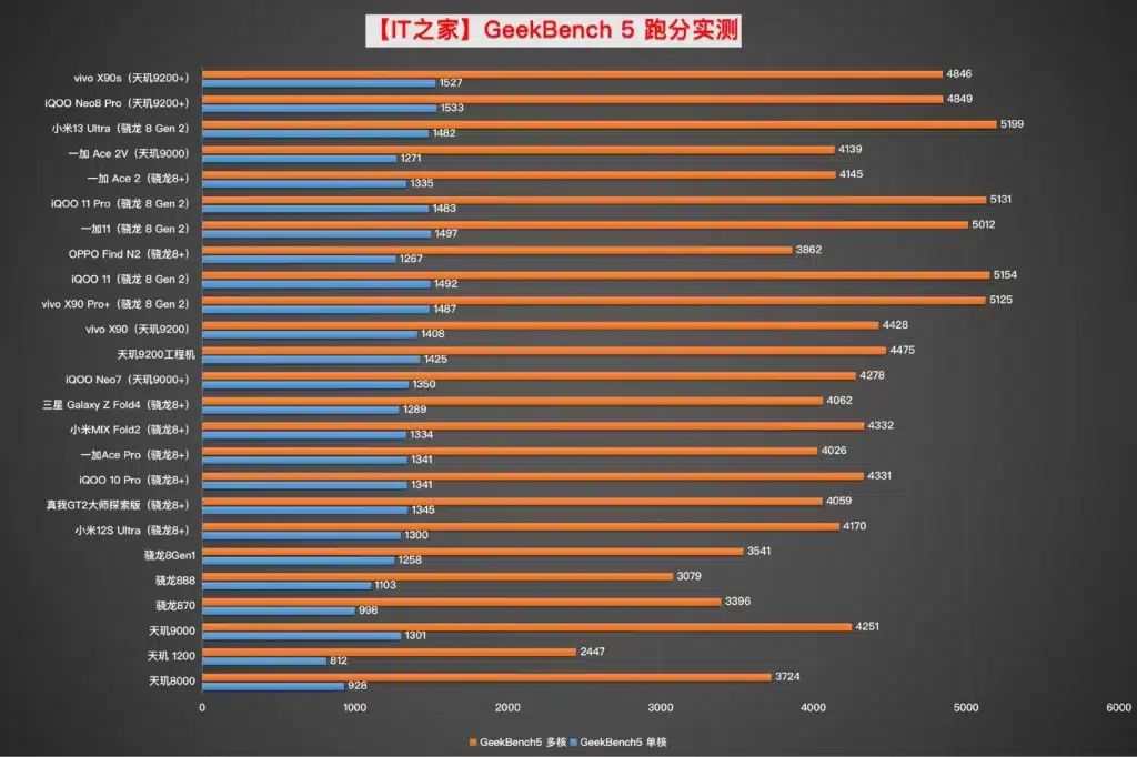 In the Geekbench 5 benchmark, the vivo X90s achieved a single-core score of over 1,527 and a multi-core score of 4,846. Its overall performance is close to that of the iQOO Neo8 Pro, with its single-core score just slightly lower.