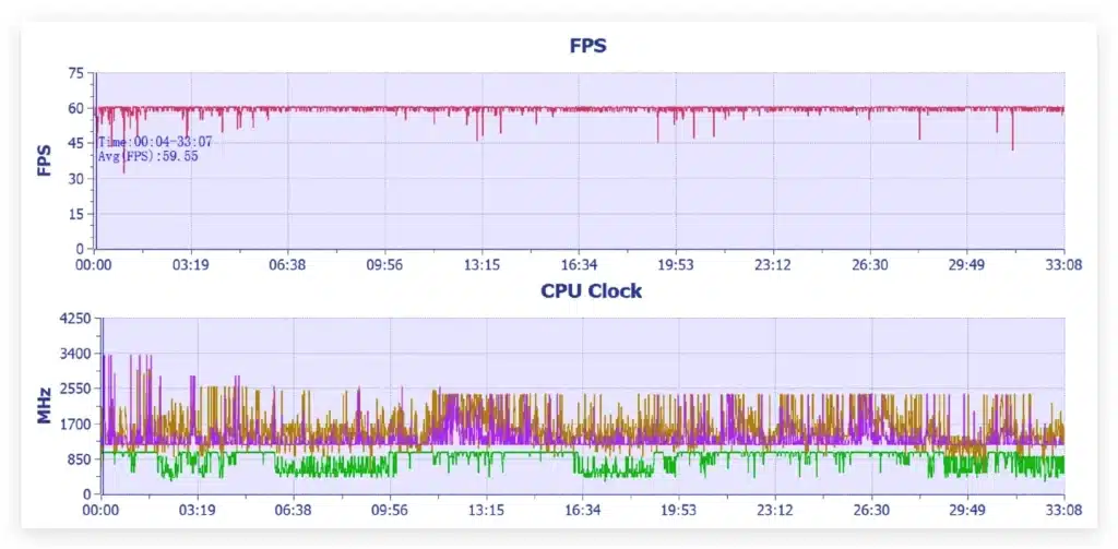The results of the 30-minute test showed that the average frame rate of the vivo X90s reached 59.55 fps.