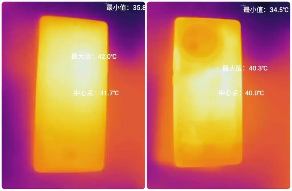 In terms of temperature control, the main area of heat concentration on the vivo X90s was the upper half of the device. It exhibited a certain degree of warmth when touched. The highest measured temperature was around 42°C, which was acceptable overall.