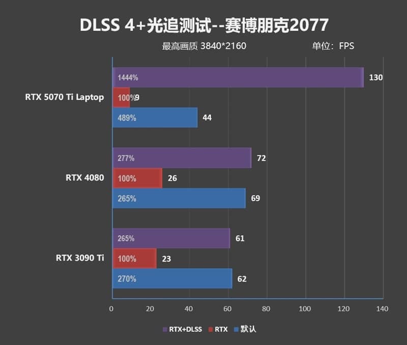Surprisingly, with DLSS 4 turned on, the RTX 5070 Ti Laptop outperformed the desktop RTX 4080 by approximately 10% in frame rates.