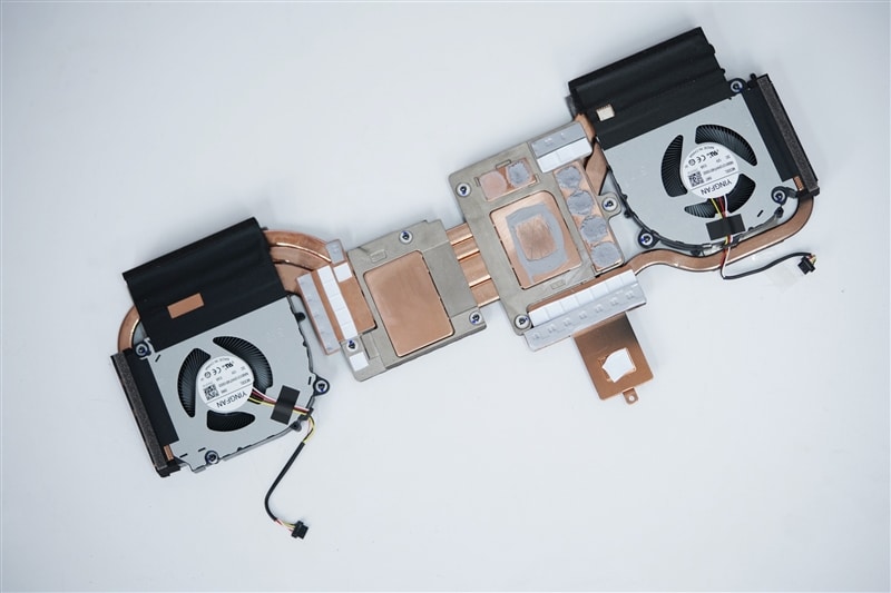 Two fans, five heat pipes, and four exhaust ports make up the cooling system which is adequate enough to support the full 190W performance level of the laptop.
