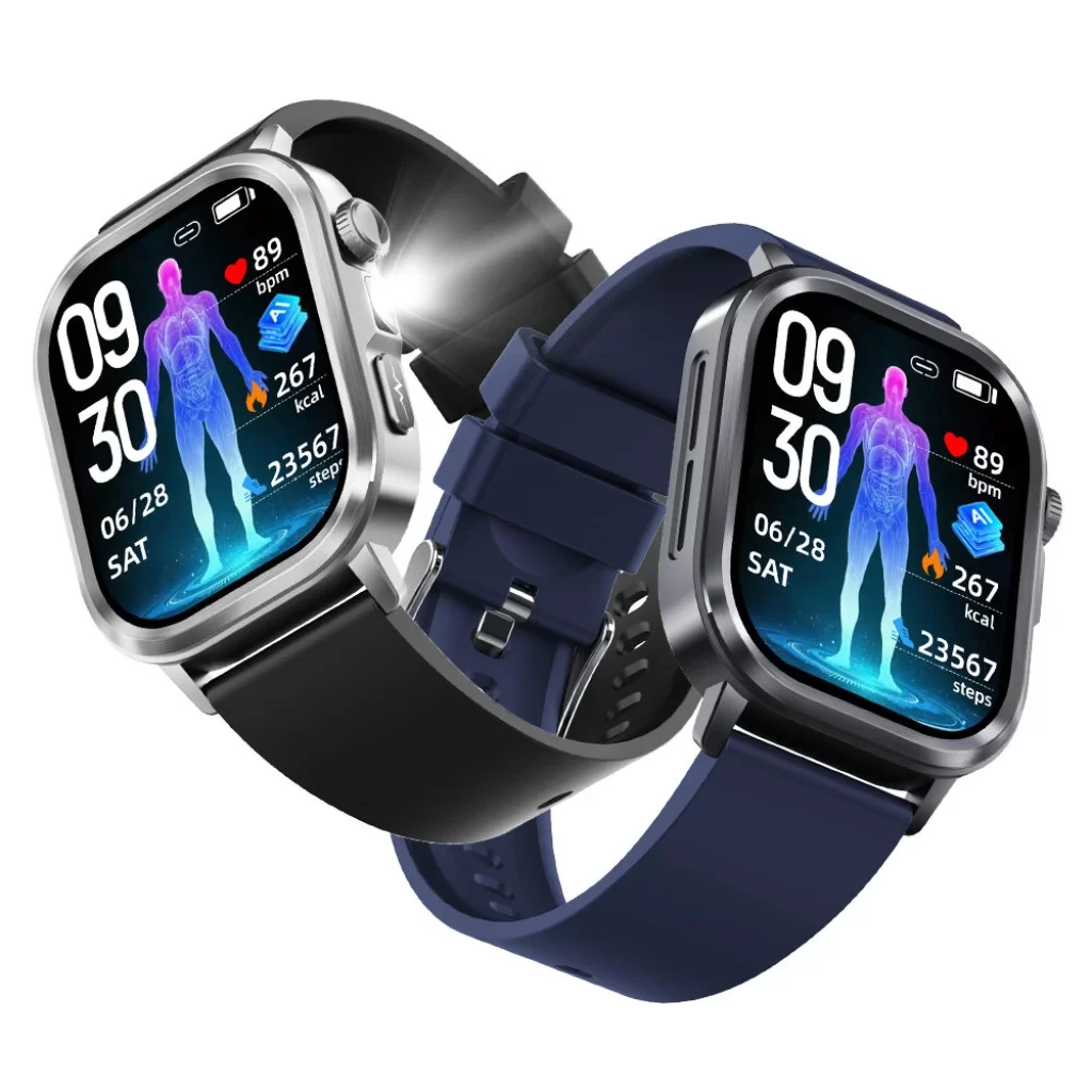 - Komplexné sledovanie zdravia: EKG, glukóza v krvi, SpO2, zloženie tela.