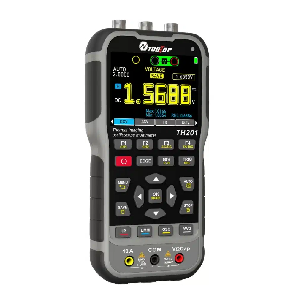AV TOOLTOP TH201 integrated a thermal imager, dual-channel oscilloscope, digital multimeter, and signal generator. 4-in-1 versatility allowed you to carry a single lightweight device instead of four devices. Thus, it increases your work efficiency during complex field inspections and significantly reduces your overall equipment costs.