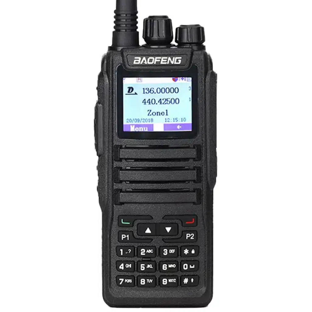 This radio boasts dual time slot operation, enhancing communication efficiency within DMR networks. Users can select between 1W and 5W output power, balancing range and battery life. A vibrant color display provides clear visibility of channels, statuses, and menu navigation, improving user experience during field operations.