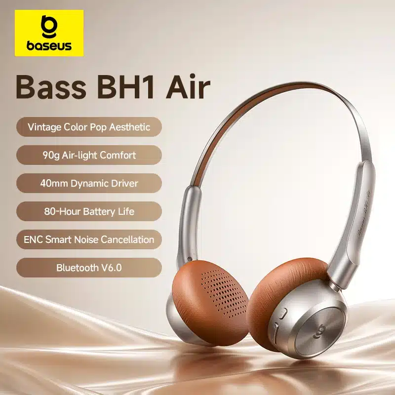 The Baseus BH1 Air is a pair of wireless over-ear headphones. They deliver a seamless audio experience with Bluetooth 6.0 technology. These headphones weigh only 90 grams. ENC noise reduction ensures clear calls and conversations. The metal headband and leather padding provide durability and comfort.