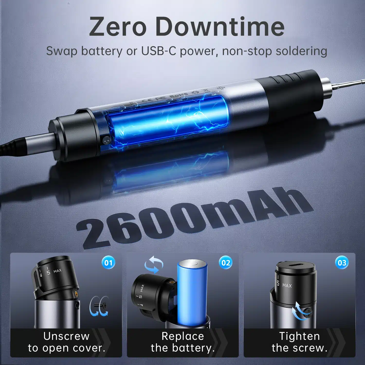 This portable soldering tool is ideal for a wide range of applications, from intricate circuit board repairs to general electronic fixes and small welding projects. Its cordless operation frees you from workspace limitations, enabling repairs in tight spots or outdoor settings where power outlets are unavailable. The integrated 18650 battery provides reliable power for extended use, enhancing productivity.