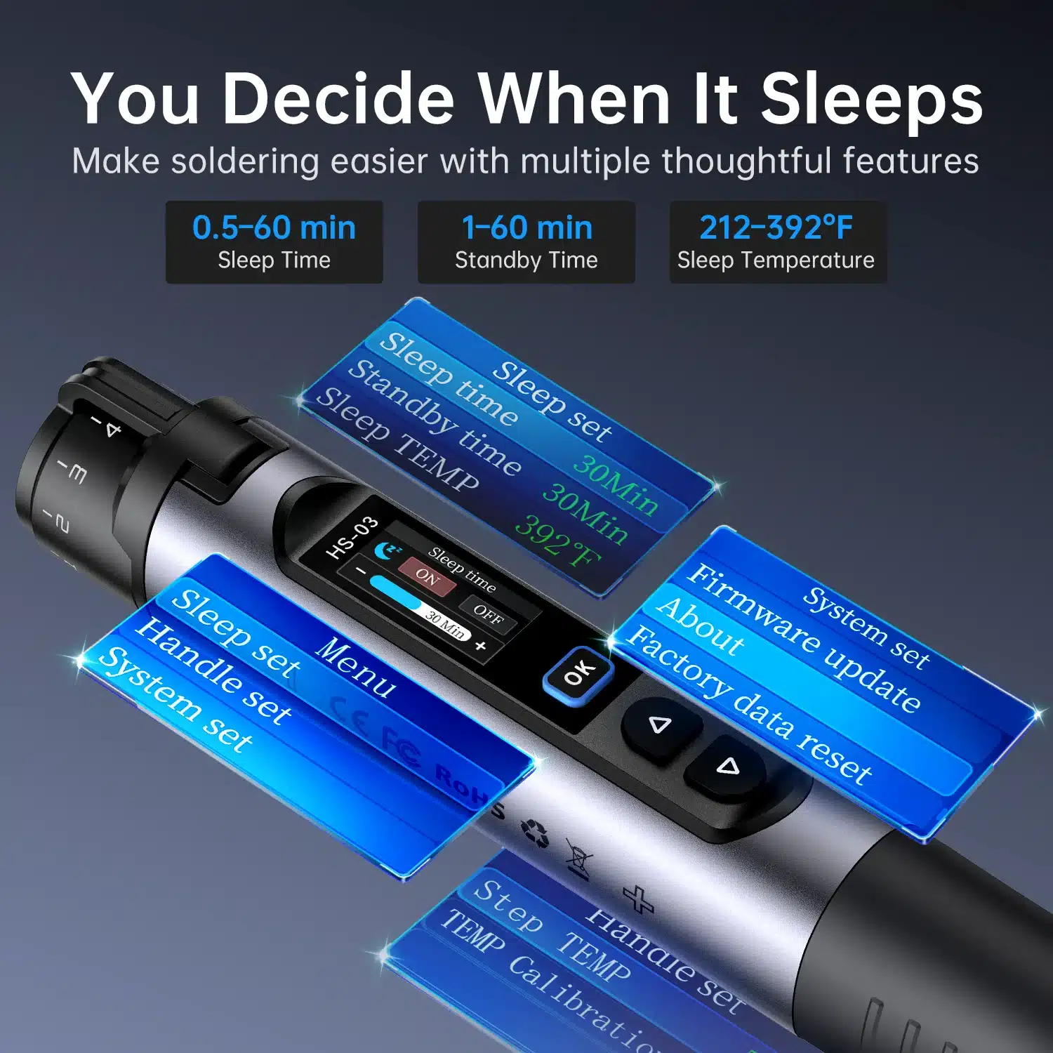 Experience rapid heating and precise temperature control, making quick work of various soldering tasks. The HS-03 features a robust design that ensures stable performance and durability in demanding environments. Its innovative USB-C charging capability allows for convenient power replenishment from multiple sources, including power banks and laptops, ensuring you’re always ready.