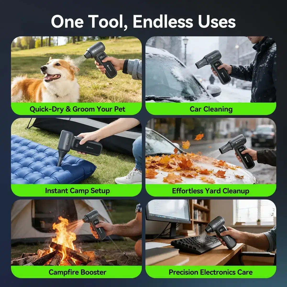 The turbo fan includes various nozzles and brushes. Therefore, it handles car detailing, electronics care, and pet grooming. You save time by using one versatile tool for inflating air mattresses and clearing outdoor camp setups.