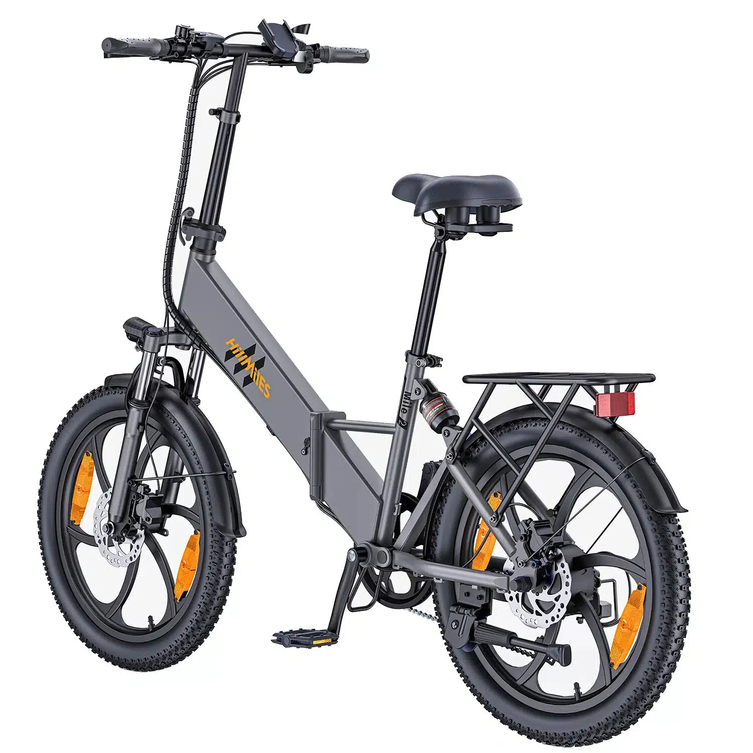 The front fork suspension effectively absorbs road vibrations. Equipped with 20-inch x 3.0-inch tires, so it can handle a variety of road conditions. It provides a smooth and comfortable ride, even on bumpy city streets and gravel roads.