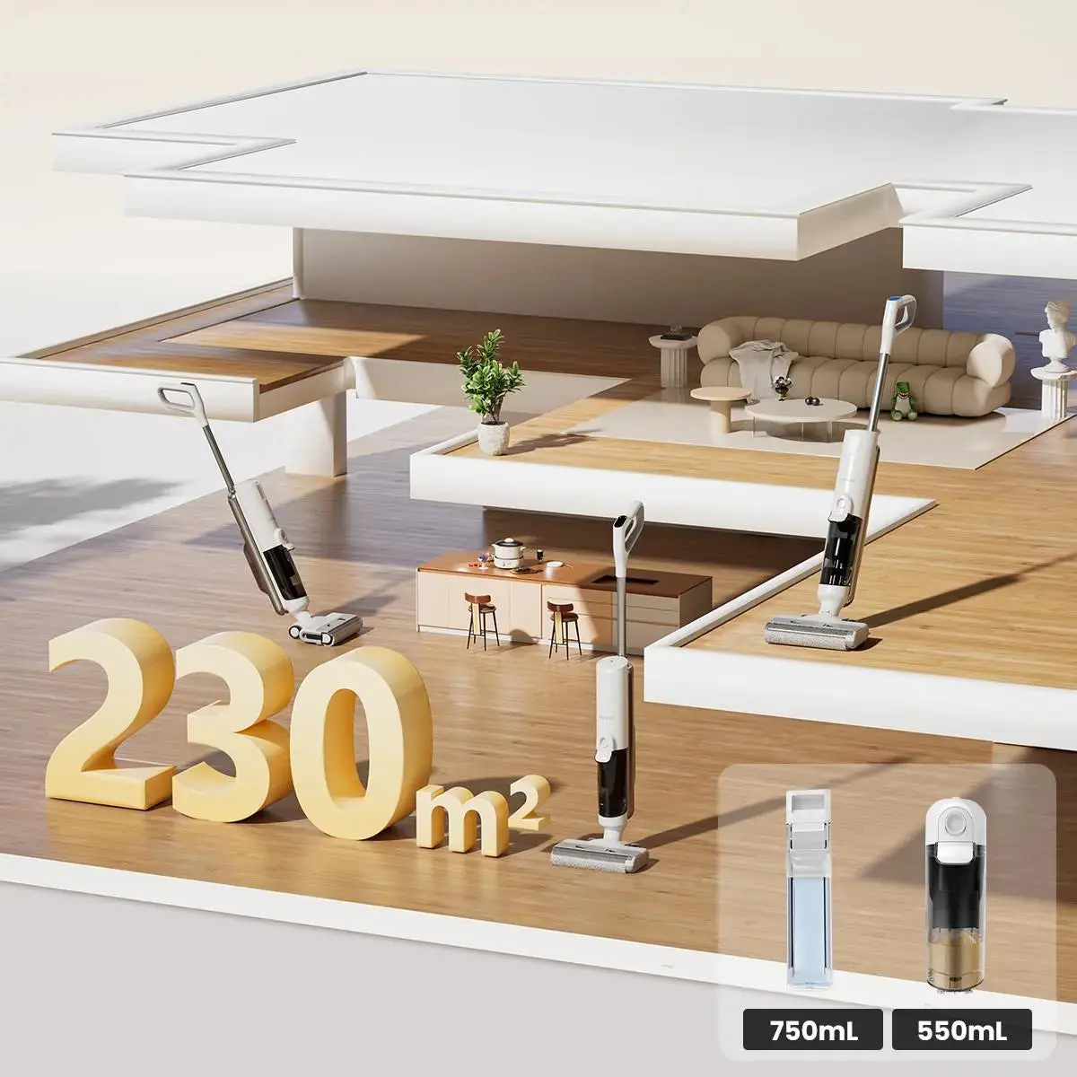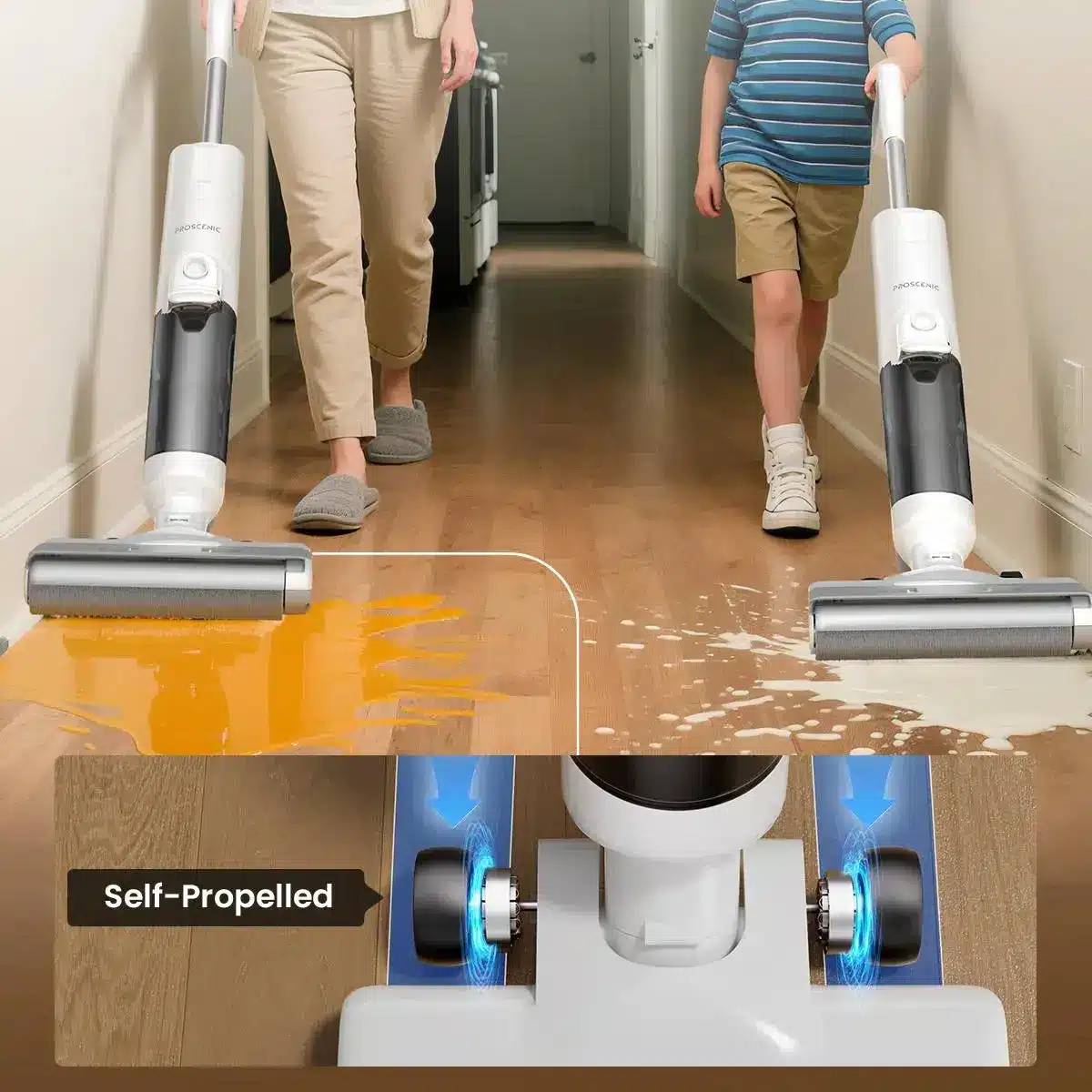 Equipped with a dual tank, Proscenic F10 Ultra keeps fresh and dirty water completely separate at all times. Thus, it ensures you always wash floors with clean water without streaks.