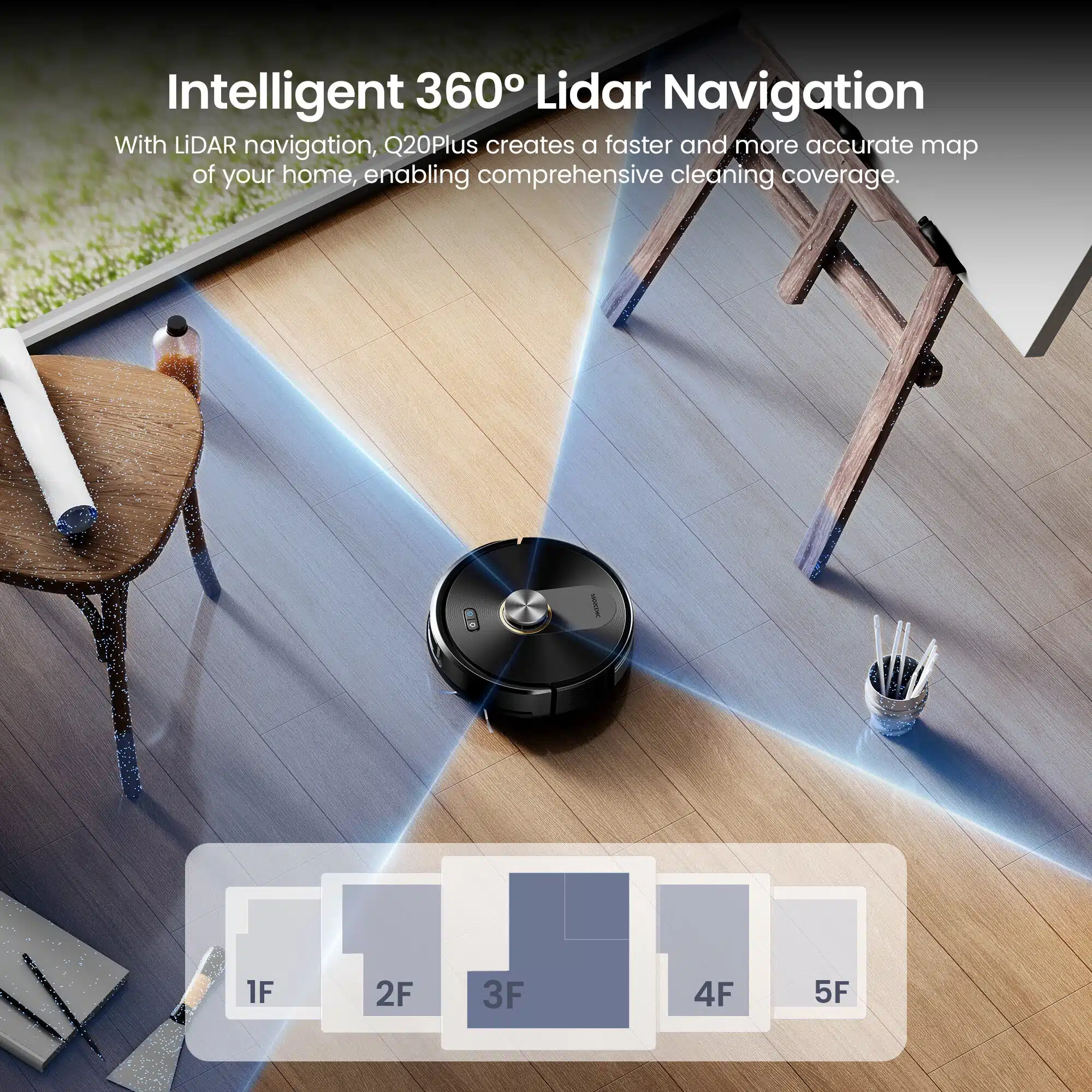 Powered by a 3200mAh battery, the Q20 Plus offers a runtime of up to 200 minutes on a single charge. It can climb obstacles up to 20mm, allowing it to navigate across thresholds and rugs with ease.