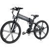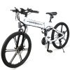 Physically, the electric bike follows a uniquely-molded design arranged with a high-grade aluminum alloy frame. It is sturdy and durable to host up to 150kg load capacity. It combines a flashlight on the front, a display on the handle, 26” wheels, and a dual-disc braking system. In the folding and unfolding position, the Samebike LO26-II measures 103x39x96cm and 181x64x105cm, respectively. It weighs 25kg.