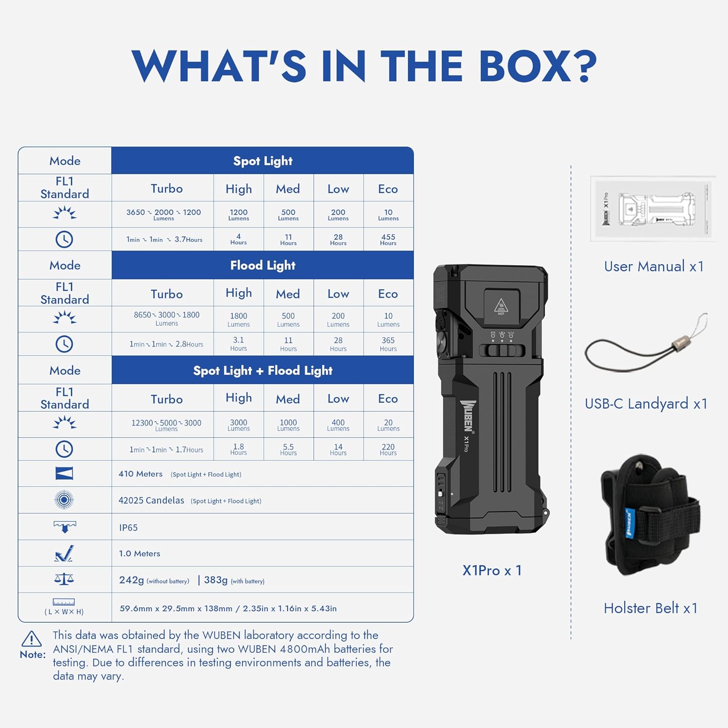 Holster Belt x 1, Usb Cable, User Manual x 1, WUBEN X1Pro x 1