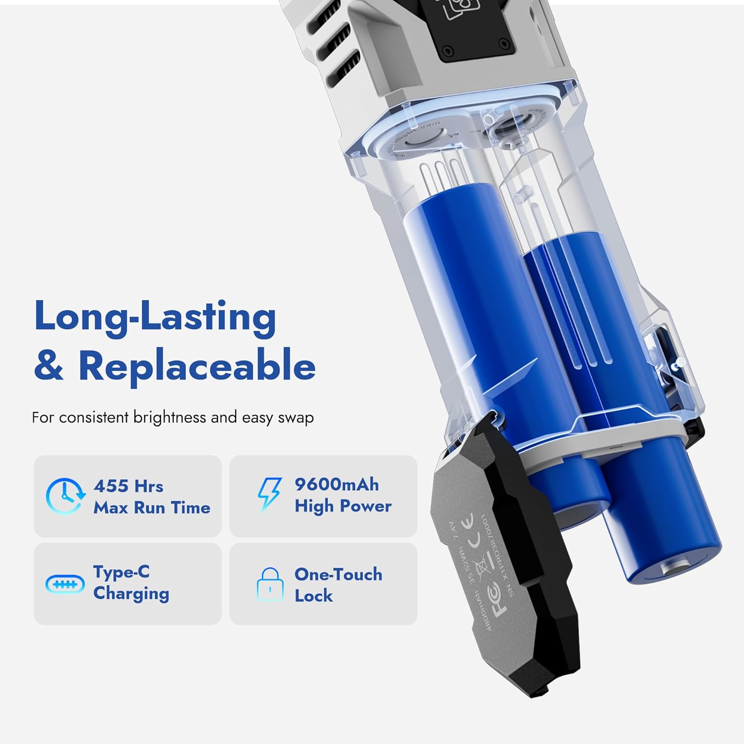 The X1Pro features a sophisticated dual-light system. It includes a 3,650-lumen spotlight and an 8,650-lumen floodlight. A high-capacity 9,600mAh lithium-ion battery powers the flashlight. It supports 30W fast charging. The X1Pro also doubles as a portable power bank. You can charge mobile devices via its built-in output port.
