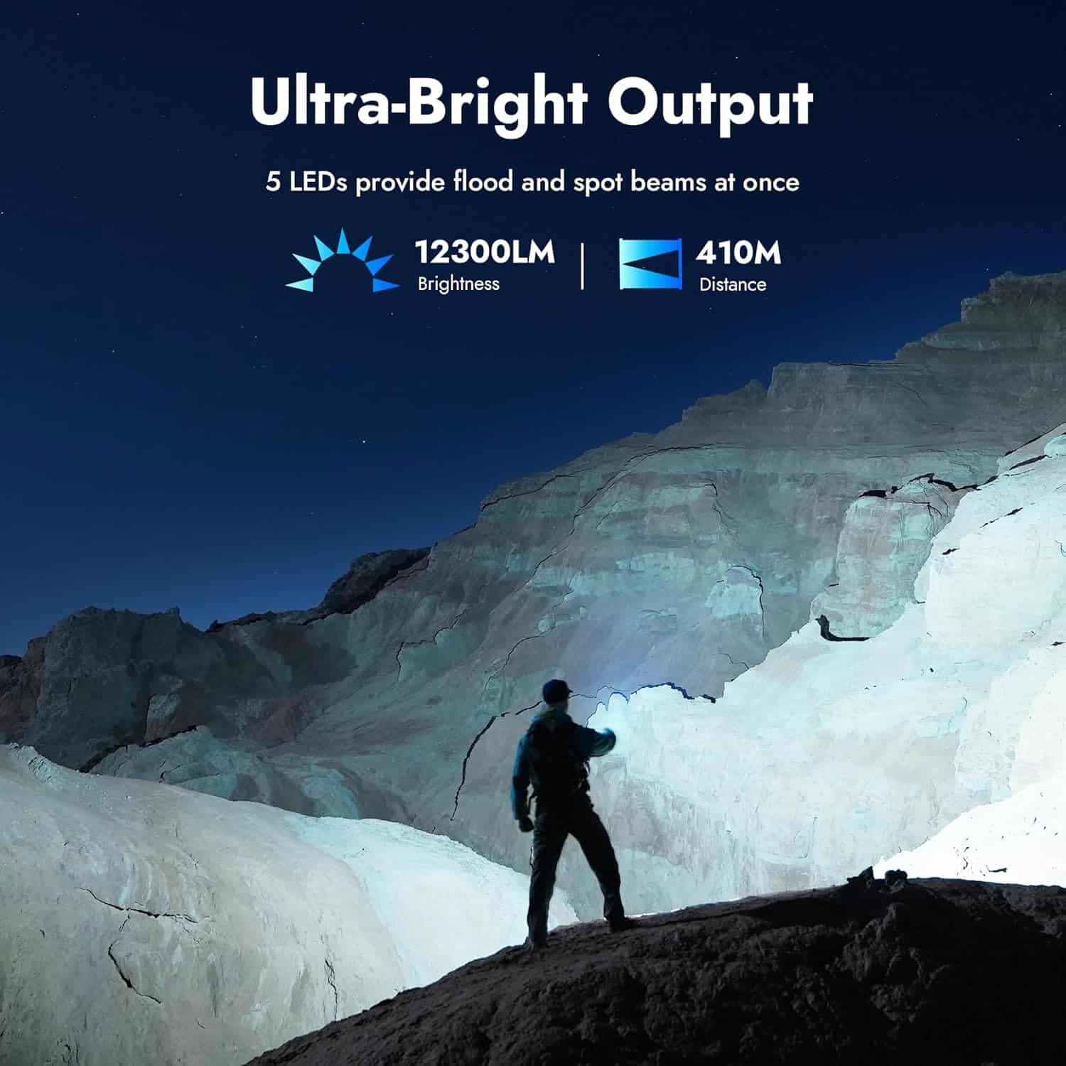• WUBEN X1Pro – 12,300 lumens, 410m beam distance, 6500K LED.