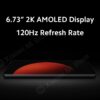 Enthusiasts will find a 6.73-inch LPTO2 AMOLED surface surrounded by ultra-narrow bezels. It shows HDR10+, 1000nit brightness, Dolby Vision, 522 PPI, 120Hz refresh rate, and 3200x1440p resolution.